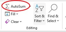 the Editing ribbon of excel. You will have the total for the four quarter.